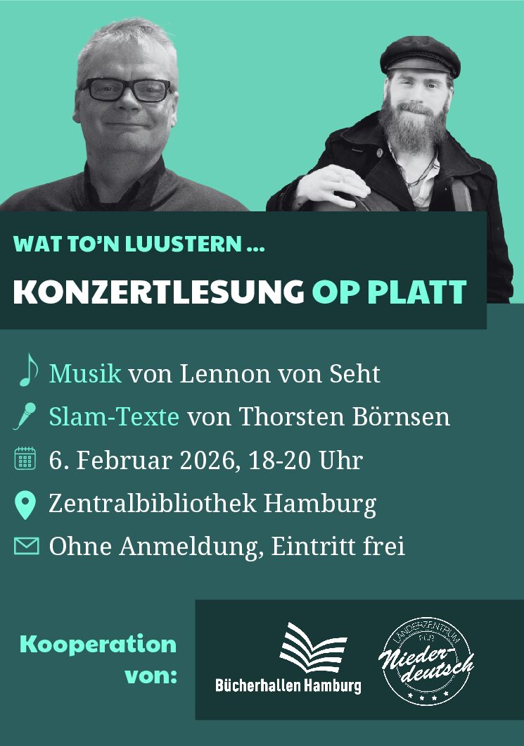 Am 6. Februar 2026 laden das Länderzentrum für Niederdeutsch und die Zentralbibliothek der Bücherhallen Hamburg zu einer plattdeutschen Konzertlesung ein. Von 18 bis 20 Uhr wird in der Hamburger Zentralbibliothek das kreative Schaffen der niederdeutschen […]